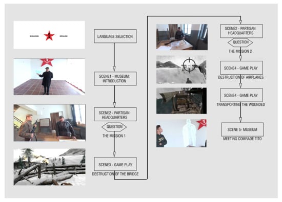 Upon successful completion of the mission the user is back in the Museum, where the curator informs them of the outcome of the battle. As a reward for bravery, the Supreme Commander, comrade Tito, shows up and congratulates the user. The application structure is presented in Figure 6.