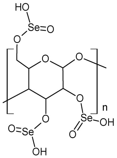 Several fungi and plant species, grown on the selenium-enriched substrates mainly as inorganic forms, such as sodium selenite, are able to incorporate selenium into the cell wall polysaccharides [170,171]. The knowledge about their structures is still fragmentary, and its current status will be presented in more detail in Section 5.