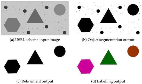 The USRL schema is designed and presented in a functional, modular manner. For a given image , the output of the USRL schema is an image , with L representing the set of labels in the specific context considered. Obviously, this output can be comprehensively written as:
