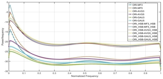 To further verify the benefit of higher significant bit-plane images, entropy of the first order pixel difference arrays is calculated from the non-filtered and filtered images. The entropy dissimilarity of pair ORI and MF3 is less in comparison with pair ORI_HSB and MF3_HSB. The high dissimilarity of low-bit filtered and low-bit non-filtered images give better detection capability. The main reason is that difference array of higher significant bit-plane images performs better. Further, the dissimilarity pattern is also followed by MF5, AVG3, AVG5, GAU3 and GAU5 filtered images as shown in Figure 3.