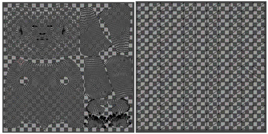 The proposed accuracy compensation method was applied in the 2D space of the texture. However, the default UV map of the SMPL model hinders compensation [54]. The default UV map of the SMPL model for a whole human body including the arm is shown in the left graph of Figure 5. We used Blender [55], an open-source 3D creation software, to modify the whole-body UV map and extract the forearm region. The extracted UV map was modified such that u-axis and v-axis were respectively perpendicular and parallel to the axis of the forearm, and Euclidean distances in 2D texture coordinate space between all vertices were proportional to their Euclidean distances in 3D world space, obtaining the result shown in the right graph of Figure 5. The vertices ( u wrsit * , v wrsit * ) ( u * , v * ) are around the wrist and also closest to the wrist among ( u * , v * ) . In the experiment, we set the v wrsit * to be the zero vector.