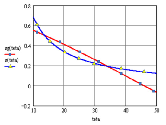 Solving Equations (13)–(14) was performed for a running radius of 0.0425 m (Figure 9).
