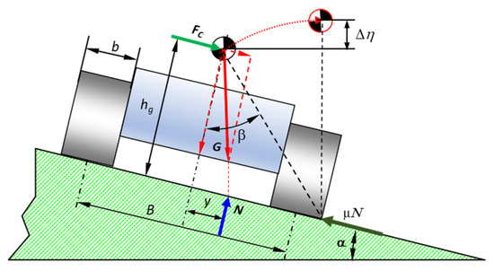 The position of the center of mass (CG) directly conditions the distribution of the pressure exerted by the support branch of the track on the ground. The value of the displacement of the turning poles is obtained by solving the following equation [64]: