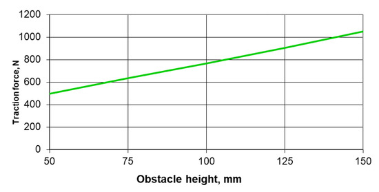 where: r [m]—the running radius of the support wheel (bucket), including the thickness of the track; h [m]—the height of the step obstacle.