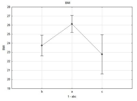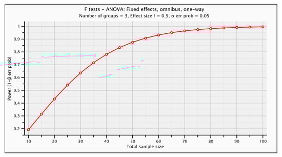 Variables with a normal distribution were compared using ANOVA variance analysis, Kruskal–Wallis non-parametric test, and posthoc multiple comparison test with the Tukey post hoc test. The estimated power for comparison of the three groups at effect size = 0.5 was 0.99 (G*Power software, Düsseldorf, Germany) (Figure 3). In order to estimate the correlation between the variables, Spearman’s and Kendall’s correlation coefficients were used. In order to estimate the correlation between variables, Spearman’s correlation coefficient was used. The chi-square test was carried out for the qualitative evaluation of variables. A logistic regression model was created to assess hidden risk. The results of univariate analysis are represented as an odds ratio with a 95% confidence interval. Multivariate analysis was performed using the stepwise regression method. The significance level was adopted as α = 0.05. The study was approved by the Bioethics Committee of Pomeranian Medical University in Szczecin (approval number KB-0012/83/16) and was conducted in accordance with the Declaration of Helsinki and Good Clinical Practice set forth by the International Conference on Harmonization of Technical Requirements for Registration of Pharmaceuticals for Human Use (ICH). We also ensured that the study conformed to applicable international regulatory authority laws, regulations, and guidelines.
