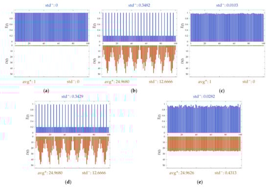 where , to generate the sequence of dynamical coupling coefficients. In practical use, this sequence is reshaped into a matrix of size  so as to gear towards the spatiotemporal indices in Equation (4). The auxiliary parameter  is set to 3.99 for achieving outstanding dynamics, and the initial value of  is set to e.