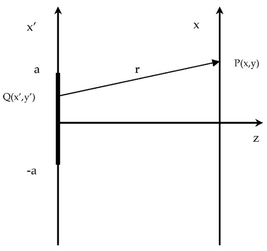 Once the amplitude U(x’,y’) is evaluated at plane B, the field U(P) at a point P (x,y) (Figure 2) can be obtained by applying the Fresnel approximation to the Fresnel–Kirchhoff integral [8]: