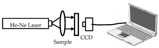 Figure 12 shows the experimental setup used to obtain the diffraction pattern of the hair. The light coming from a He-Ne laser (633 nm) was collimated by using a system of lenses; the sample (hair) was placed between the laser and a CCD connected to a personal computer, which was used to process the data. Figure 13 shows the diffraction pattern obtained from the hair by using this setup.