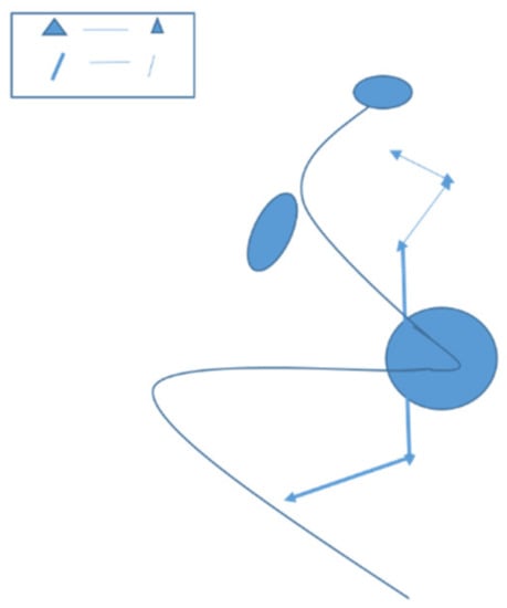 The BAS algorithm is a meta-heuristic search algorithm where the beetle can be compared with a triangle and the antennas of the beetle can be considered as two long sides of the triangle. The line between the triangle is denoted as the movement of the beetles and smell concentration is denoted with blue round shapes. The schematic diagram of the BAS algorithm is shown in Figure 4.