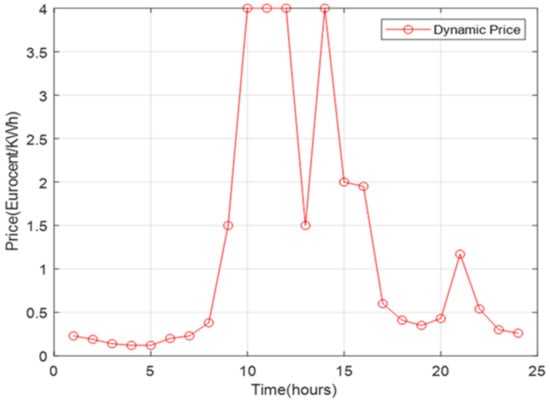 The dynamic pricing of the grid is considered on an hourly basis and is shown in Figure 6. The bidding strategy of the VPP with the grid is dependent on the price rating, that is, when the consumption of energy from the grid is high, the electricity price is less and vice versa.