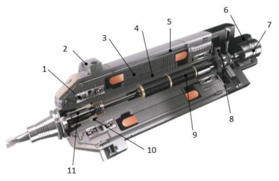- Zhao, H.X.; Yang, Z.J.; Chen, C.H.; Tian, H.L.; Chen, L.; Ying, J.; Jia, X. Development of Reliability Test System Based on Working Principle and Fault Analysis of Motorized Spindle. In Proceedings of the 2018 3rd International Conference on System Reliability and Safety (ICSRS), Barcelona, Spain, 22–25 November 2018; pp. 299–307. [Google Scholar]