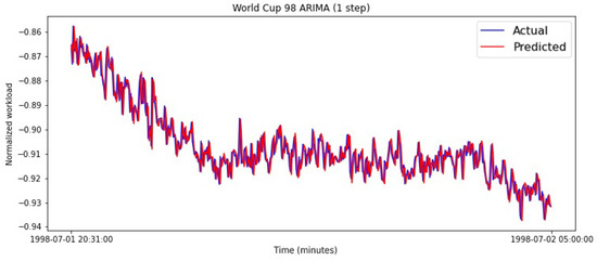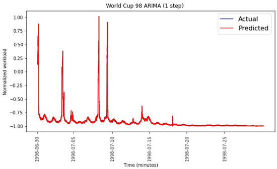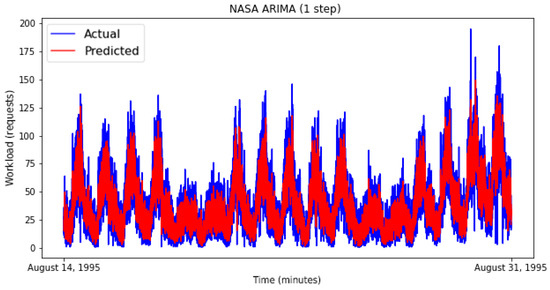Messias et al. [15] proposed a prediction model using genetic algorithms (GAs) to combine many statistical methods. They used three logs extracted from real web servers to evaluate their model. The results showed that the proposed model yields the best results. However, with the NASA web server logs [27], the ARIMA model achieves the best result with the best prediction accuracy. The ARIMA model’s configuration was chosen by the auto.ari-ma() function of the R package proposed in [28] to automatically choose the value for .