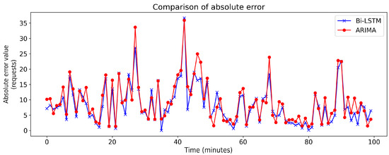 Comparison of absolute error for the first 100 minutes of NASA testing set.