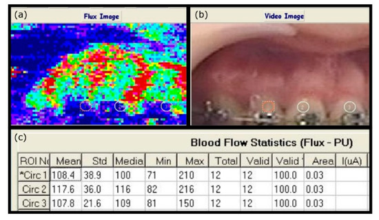 Laser Doppler is a non-invasive, objective, painless, semi-quantitative method, proven to be reliable and reproducible by numerous studies [29]. Laser is used to detect the pulp blood vessels in which the red blood cells scatter the light beams and cause Doppler shifts [13,30]. The objective data and imaging scans are presented. The calculated signals in the perfusion units represent the red blood cell density and velocity to evaluate the pulp vitality after trauma or pulp capping [29,31]. Different from previous Doppler flowmetry studies that only recorded waves and data, we report for the first time, the use of laser Doppler blood flow monitor and imager (MoorLDI-2λ) to evaluate the pulp vitality in the dental field.
