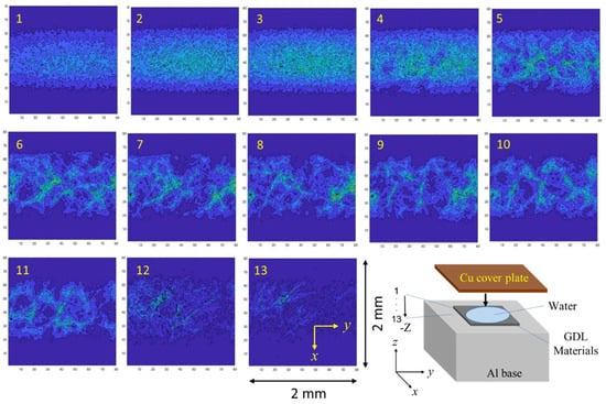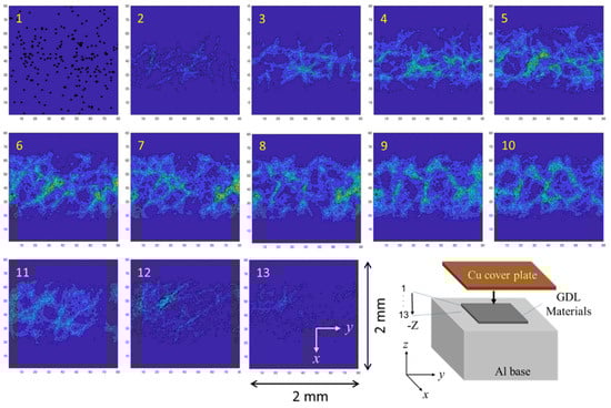 - Zenyuk, I.V.; Parkinson, D.Y.; Hwang, G.; Weber, A.Z. Probing water distribution in compressed fuel-Cell gas-Diffusion layers using X-ray computed tomography. Electrochem. Commun. 2015, 53, 24–28. [Google Scholar] [CrossRef]