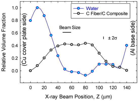 3.4. Relative Volume Fraction of C Fiber/C Composites and Liquid Water