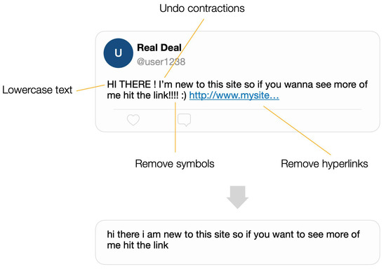 - Uysal, A.K.; Gunal, S. The impact of preprocessing on text classification. Inf. Process. Manag. 2014, 50, 104–112. [Google Scholar] [CrossRef]