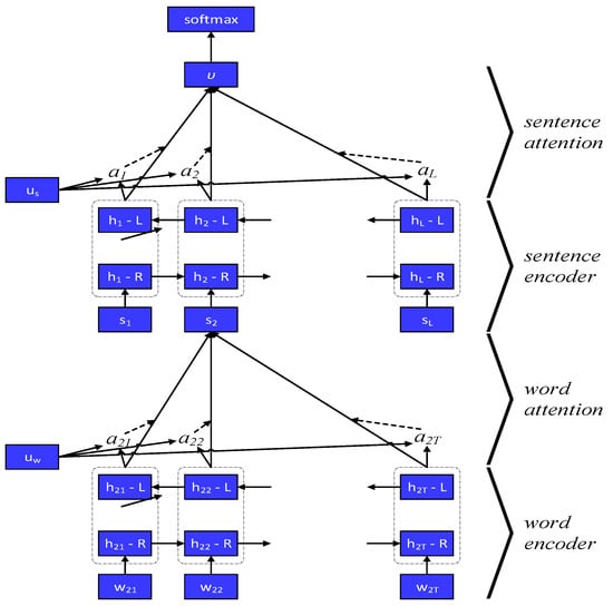 - Yang, Z.; Yang, D.; Dyer, C.; He, X.; Smola, A.; Hovy, E. Hierarchical attention networks for document classification. In Proceedings of the 2016 Conference of the North American Chapter of the Association for Computational Linguistics: Human Language Technologies, San Diego, CA, USA, 12–17 June 2016; pp. 1480–1489. [Google Scholar]