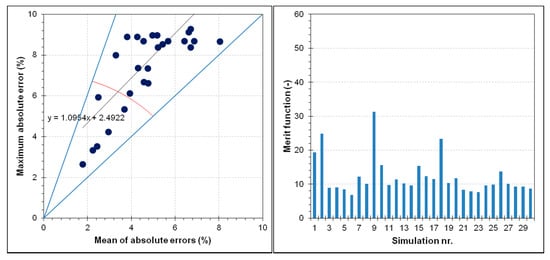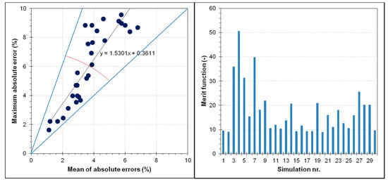- the mean of absolute percentage errors (εmean,abs), defined as the arithmetic mean of the absolute value of relative errors (expressed as percentages) of the difference between each value obtained from the CFD-FVM simulations Ti from the target value Ttarget,i for the same temperature;