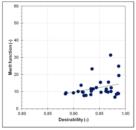 - di is the “desirable range” for a single generic response i, i.e., a metric related to the closeness of an output from its target value; the desirable ranges are all from zero to one (i.e., from least to most desirable value, respectively);