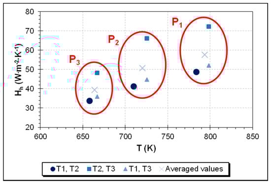 - A system of two equations (i.e., two of the three RSM models for T1, T2, T3) for the two unknown quantities (T and Hh) is set up by fixing two of the three experimentally measured temperatures, then solving the system for the third value; since there are three temperatures, the previous step is repeated three times, changing the pair of temperatures to be matched each time;