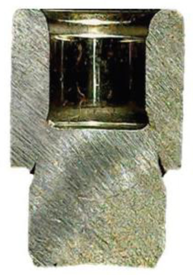 Figure 6b due to an insufficient constraint from the extrusion chamber. The sizes of the punch and die outlet are also similar, but the cracks start from the cup corner instead of the pin corner. This contradicts the common interpretation of the forming fracture with the “hole-punching effect” the cracks of which should initiate at the pin corner.
