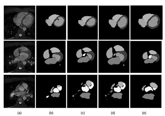- Payer, C.; Stern, D.; Bischof, H.; Urschler, M. Multi-label Whole Heart Segmentation Using CNNs and Anatomical Label Configurations. In Statistical Atlases and Computational Models of the Heart. ACDC and MMWHS Challenges; Springer International Publishing: Cham, Switzerland, 2018; pp. 190–198. [Google Scholar]