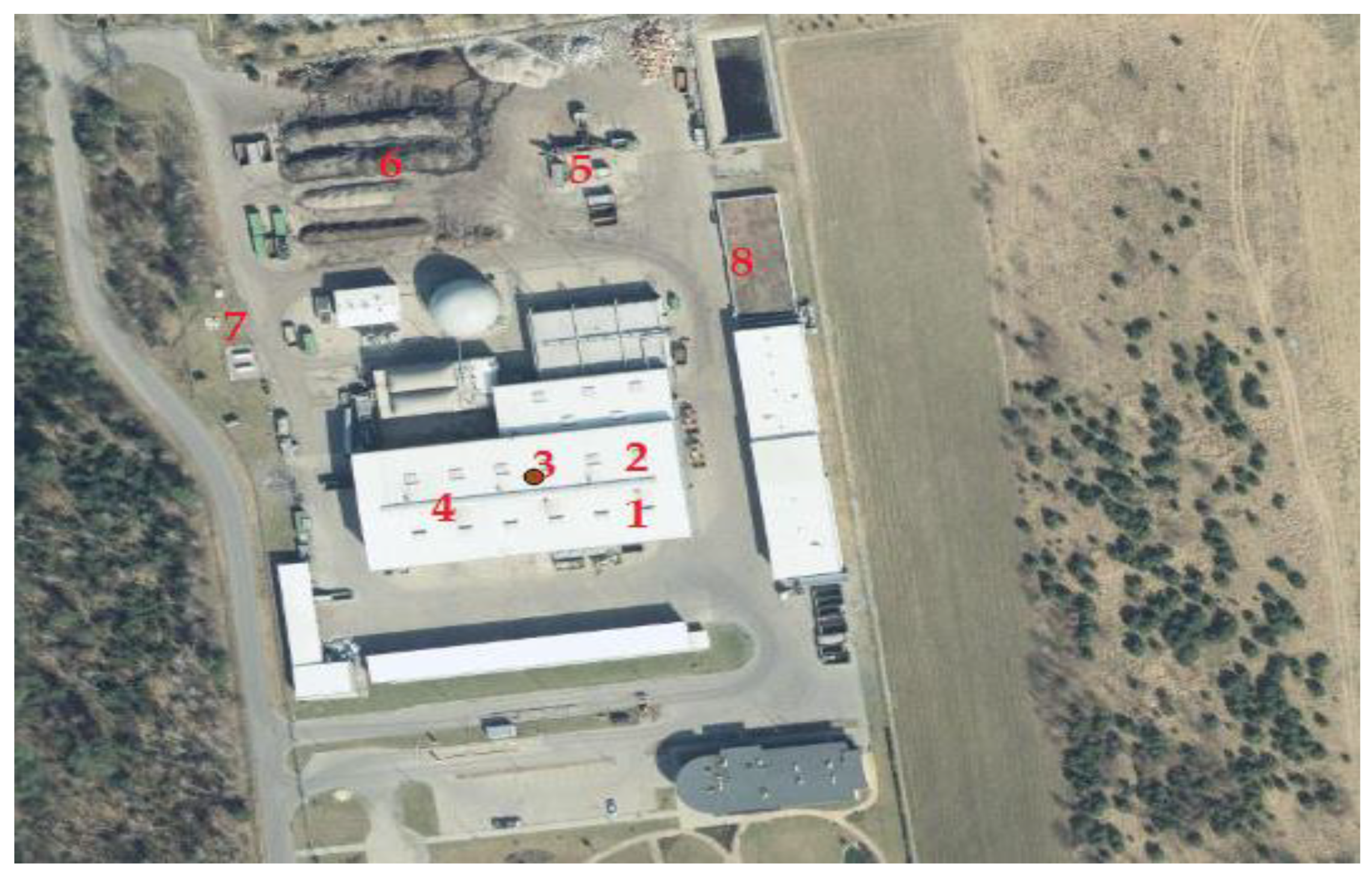 - Wiśniewska, M.; Kulig, A.; Lelicińska-Serafin, K. The importance of the microclimatic conditions inside and outside of plant buildings in odorants emission at municipal waste biogas installations. Energies 2020, 13, 6463. [Google Scholar] [CrossRef]