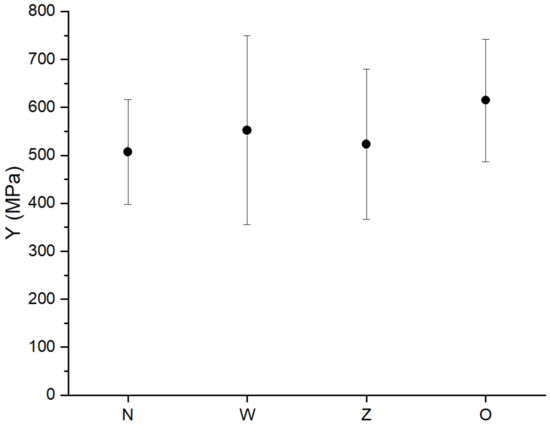 Graph of the averaged Young’s pseudo-modulus of elasticity. The black dot means mean value.