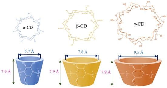 Molecular structure and dimensional characteristics of various cyclodextrins [71].