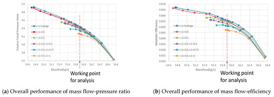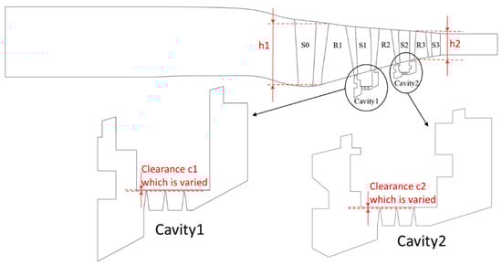 - Liang, D.; Gui, X.M.; Jin, D.H. Influence of Seal Cavity Leakage Flow on Compressor Performance Investigated with a Circumferentially Averaged Method. Appl. Sci. 2021, 11, 780. [Google Scholar] [CrossRef]