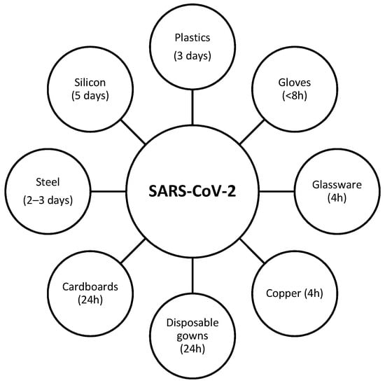 SARS-CoV-2 coronavirus is a new type of virus and belongs to the beta-coronavirus group. It is very similar to SARS-CoV. The coronavirus is spherical in shape with a diameter of about 130 nm. Due to its small size, it can remain airborne for a long time and can easily pass through many protective materials [6]. Coronavirus is a pathogen different from other viruses, bacteria, and pathogenic microorganisms known to the waste management industry on a daily basis. Figure 2 shows the persistence of coronavirus on the surface of different wastes [7].