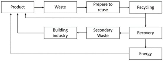 Thermal treatment is the safest option of waste management during a pandemic [12]. There is one problem—the more waste is incinerated, the more secondary waste is created [4]. Europe generated approximately 29.4 million mg of secondary waste in 2017 from 492 million mg of municipal solid waste and 0.24 million mg only in Poland. If the secondary wastes were managed, the circuit would be closed (Figure 3) [27]. Figure 3 shows an ideal circular economy [28].