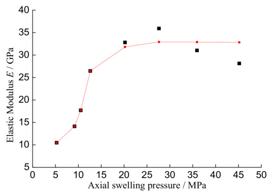 Relationship between simulated axial expansive pressure and elastic modulus.