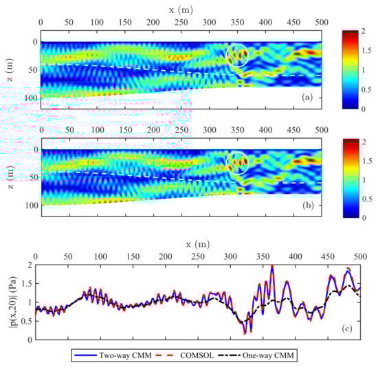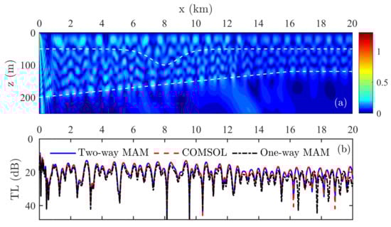 - Abawi, A.T. An energy-conserving one-way coupled mode propagation model. J. Acoust. Soc. Am. 2002, 111, 160–167. [Google Scholar] [CrossRef] [PubMed]