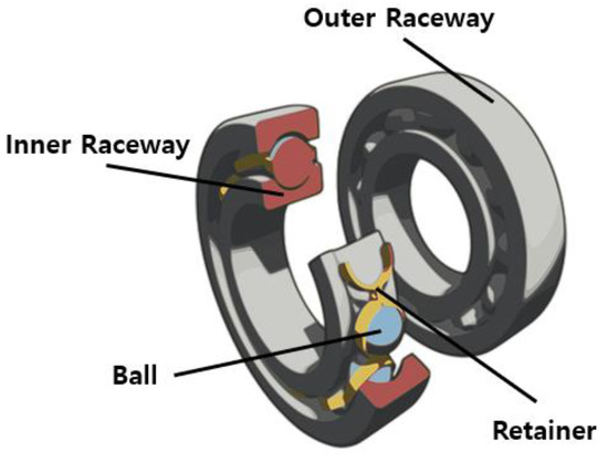 Bearings are largely divided into two types: One is a rolling bearing that converts a sliding contact into a rolling contact by inserting a ball, roller, or needle roller between the shaft and the bearing to reduce friction. The other is a sliding bearing that performs sliding friction with the shaft and bearing surface contact. As the most frequently used rolling bearings have rolling contact, they have less friction and less friction loss than sliding bearings do, and their starting resistance and heat generation are also small, allowing high-speed rotation. However, as the rolling element and the raceway are in point or line contact, they are weak against impacts and have the drawback of easy noise generation [9,10,11,12].