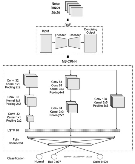 To solve the above problem, this study proposed a denoising autoencoder (DAE) to remove noise and a multi-scale convolution recurrent neural network (MS-CRNN) to detect and classify defects. The main contributions of this study are as follows: