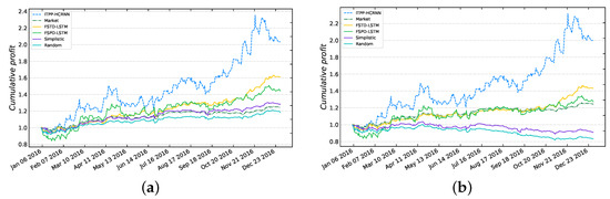 If the transaction costs are not considered, all six methods are profitable. Although they are inferior to the proposed method, the other five methods can also earn profits close to the performance of the market. In particular, FSPD-LSTM and FSTD-LSTM are able to earn significantly more profit than the other three methods. Nevertheless, if we consider the transaction costs, the performances of FSPD-LSTM and FSTD-LSTM are not much better than the performance of the market. In addition, simplistic and random methods even obtain negative returns. The reason for this is that these methods make trades too frequently, and the profits are offset by a high number of transaction costs. In contrast, the proposed method focuses only on the important trading points, thus reducing the transaction frequency. As a result, the proposed method is little affected by transaction costs, which has an influential impact on the actual returns.