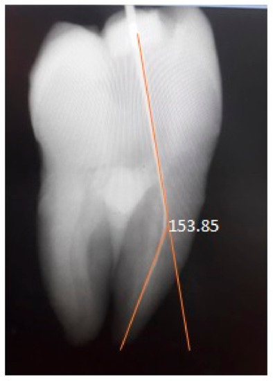 - Günday, M.; Sazak, H.; Garip, Y. A Comparative Study of Three Different Root Canal Curvature Measurement Techniques and Measuring the Canal Access Angle in Curved Canals. J. Endod. 2005, 31, 796–798. [Google Scholar] [CrossRef] [PubMed]