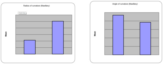 Radius of curvature, angle of curvature (Maxillary).