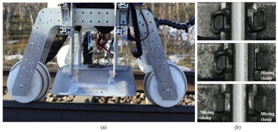- Stella, E.; Mazzeo, P.; Nitti, M.; Cicirelli, G.; Distante, A.; D’Orazio, T. Visual recognition of missing fastening elements for railroad maintenance. In Proceedings of the IEEE 5th International Conference on Intelligent Transportation Systems, Singapore, 9 July 2003; pp. 94–99. [Google Scholar] [CrossRef]