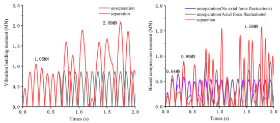 Bending moment change of bridge pier under two conditions: (left) Vibration bending moment; (right) Eccentric compression moment.