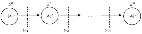 The suggested model, system behavior analysis model (SAM), is a state transition model that uses a price vector as an input and produces a system state transition graph by estimating the decisions of users. This graph, in which each state is identified by the associated job arrival rate vector , depicts the evolution of the system behavior over time. The state transition is discrete and occurs only when new values of are broadcast, as shown in Figure 2. St denotes the system state at time t, and denotes the job arrival rate vector at St. The transition of the system state is derived by modeling the decisions of individual users. Recall that users make decisions based on the knowledge that is currently available, , which remains fixed between updates. The actual may change as a result of the users’ decisions during the interval between broadcasts, but this new is not available for users to base their decisions on.