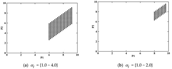 From these equations, we can compute the optimal job arrival rates of type-1 and type-2 jobs, and , for the given value functions, and . Once the optimal is obtained, the optimal prices, and , can be computed from the equilibrium conditions of and where is the expected completion delay for a type-j job. At this point, the utility function becomes . I assume that is greater than and C1 = C2 = 1. Then, owing to the incentive–compatibility [23], type-1 jobs will always prefer level 1 over level 2, whereas type-2 jobs always prefer level 2 over level 1. In other words, and . As a result, is the same as , and is the same as at the equilibrium state.