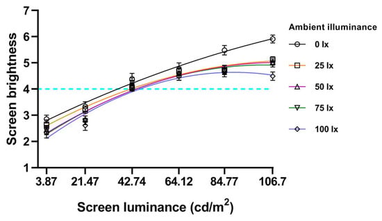 The descriptive data for screen brightness are shown in Table 2. The current data indicated that participants’ perceived brightness increased with screen luminance but decreased with ambient illuminance.