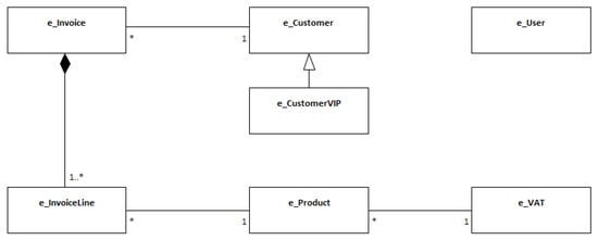 This paper uses a running example to support the explanation and discussion. This example refers to the requirements of a fictitious information system called “BillingSystem”, which is an invoice management system inspired and adapted from the example initially introduced by Silva [18]. Figure 5 depicts the main data entities and relationships of this example with a simplified UML class diagram: the BillingSystem must manage data entities like invoices with invoice lines, customers, users, products, etc. For the sake of simplicity, the examples showed in this section are only in CNL-A and CNL-B notations. However, Appendix A shows a complete description of these specifications in CNL-A, CNL-B and RSL, as well an equivalent UML model.