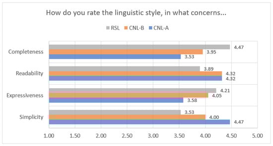 For the sake of the explanation of this paper, we consider three different linguistic styles represented by two informal CNLs (named CNL-A and CNL-B) and a rigorously defined CNL (the RSL language).