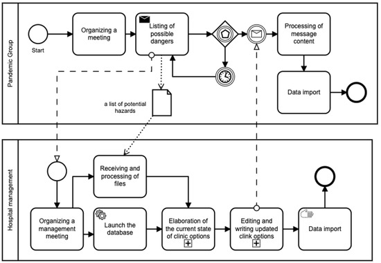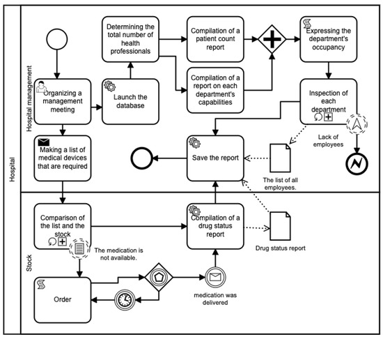 Automation, system integration, or an overarching process approach are all aimed at lowering costs while improving service quality, which is critical, not only for pandemic planning. As the name implies, the process approach focuses on the process and its activities. The process’s outcomes should be definable and predictable. Another essential feature is that the process follows a logical and linear sequence or is functionally dependent on the procedures and resources that occur within the process. Some authors attempt to provide a solution for process model analysis. Melao and Pidd [21] and Tomaskova [22], for example, discussed the advantages and disadvantages of various modeling approaches used in business process transformation. Glassey [23] compared three case study process modeling processes. Sadiq and Orlowska [24] employed graph reduction techniques to analyze process models. Other authors, such as van der Aalst, Reijer, Weijters et all [25] or Krogstie, Sindre and Jorgense [26], employed specialized tools, frameworks, and methodologies for process analysis and modeling.
