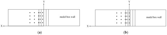 where ρdmax is the maximum dry density of sand; ρdmin is the minimum dry density; and ρd is the actual dry density of the soil. By equating Dr in Equation (1) to 0.75, the actual dry density of the sand can be calculated (ρdmax and ρdmin are shown in Table 1). Accompanied with the already-known volume of each filling, thus the relative compactness of each layer can be controlled by the mass of sand in each filling.