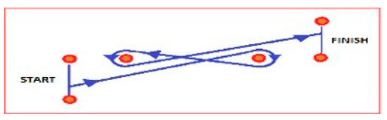 Representation of the 30 m figure-of-eight sprint circuit’s trajectory from the start to the finish line.